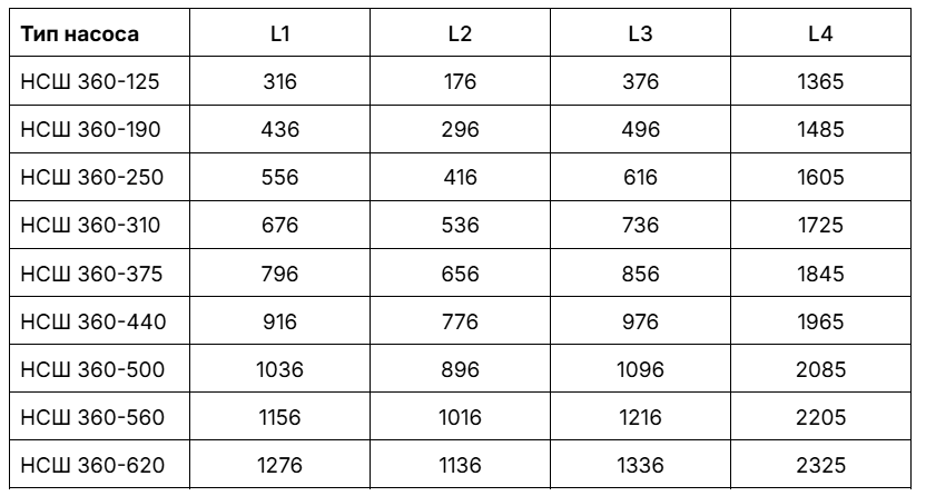 Основні габаритні та приєднувальні розміри НСШ 360-125…620